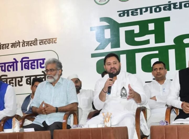 महागठबंधन की पटना प्रेस कॉन्फ्रेंस में बड़ा एलान; तेजस्वी यादव ने कहा— सरकार बनी तो 500 रुपये...