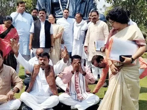 भूपेश बघेल पर ईडी रेड के विरोध में कांग्रेस विधायकों का प्रदर्शन, रायपुर मास्टर प्लान की अनियमितताओं...