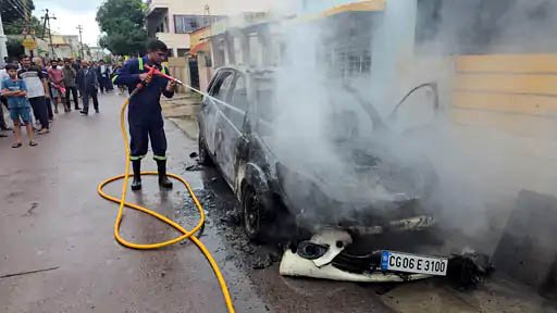 कर्मचारी नगर में खड़ी कार में लगी आग, कुथरेल गांव में बारदाना भरे मिल में भीषण लपटें;...