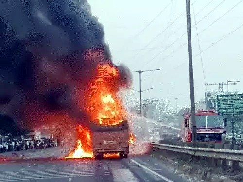 ट्रक का ब्रेक फेल हुआ तो मचा हाहाकार; कंटेनर और कार में लगी भीषण आग, हाईवे पर...