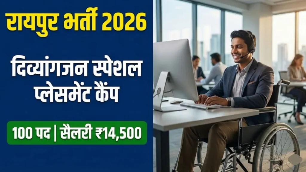 रायपुर (ए) : छत्तीसगढ़ की राजधानी रायपुर में रोजगार की तलाश कर रहे दिव्यांग युवाओं के लिए एक बेहद राहत भरी खबर सामने आई है। राष्ट्रीय रोजगार सेवा छत्तीसगढ़ के अंतर्गत विशेष रोजगार कार्यालय रायपुर द्वारा एक विशेष प्लेसमेंट कैंप का आयोजन किया जा रहा है। इस पहल का मुख्य उद्देश्य दिव्यांगजनों को निजी क्षेत्र की प्रतिष्ठित कंपनियों में सम्मानजनक रोजगार के अवसरों से जोड़ना और उन्हें आत्मनिर्भर बनाना है। जो भी शिक्षित दिव्यांग युवा नौकरी की तलाश में हैं, उनके लिए आज का दिन अपने करियर की नई शुरुआत करने का एक बेहतरीन मौका साबित हो सकता है।