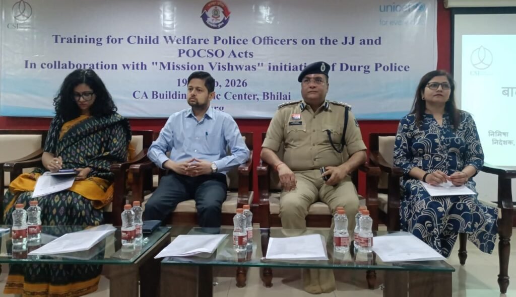 दुर्ग। बाल संरक्षण से जुड़े मामलों में पुलिस की भूमिका को और प्रभावी बनाने के उद्देश्य से दुर्ग जिला पुलिस ने एक महत्वपूर्ण पहल की। UNICEF के सहयोग से आयोजित रेंज स्तरीय कार्यशाला में बाल कल्याण पुलिस अधिकारियों और विवेचकों को Protection of Children from Sexual Offences Act (POCSO) तथा Juvenile Justice Act (JJ Act) के प्रावधानों पर व्यवहारिक और विधिसम्मत प्रशिक्षण दिया गया। कार्यशाला का आयोजन 19 फरवरी 2026 को सुबह 10:30 बजे सीए बिल्डिंग, सिविक सेंटर भिलाई में किया गया।
