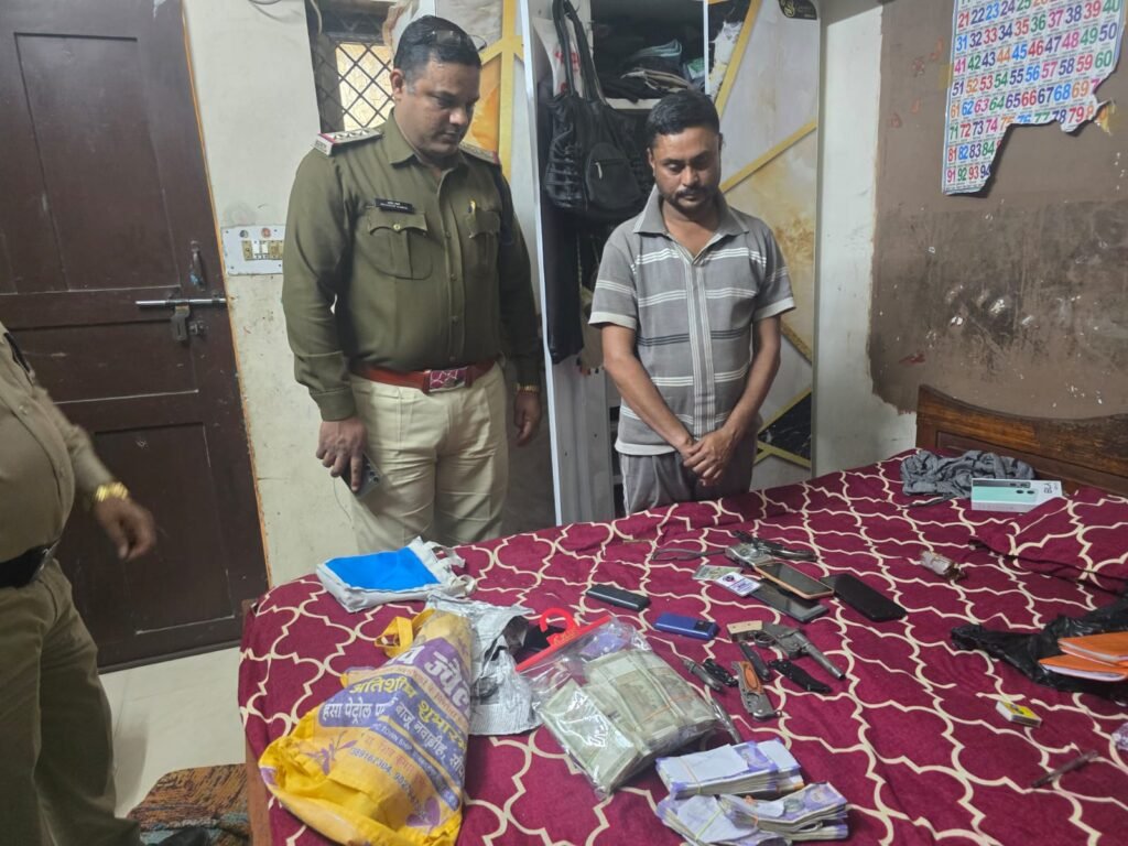 - देशी कट्टा, कारतूस, चाकू, तीन कार और नकदी बरामद
