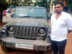 दुर्ग-भिलाई। दुर्ग-भिलाई क्षेत्र में पुलिस ने सख्त कार्रवाई करते हुए एक ऐसे युवक को गिरफ्तार किया है, जो अपनी ब्लैक थार गाड़ी पर अवैध रूप से ‘पुलिस’ का मोनो और बोर्ड लगाकर सड़कों पर दबदबा बनाने की कोशिश कर रहा था। आरोपी तेज रफ्तार और लापरवाही से वाहन चलाकर आम लोगों की जान जोखिम में डाल रहा था।