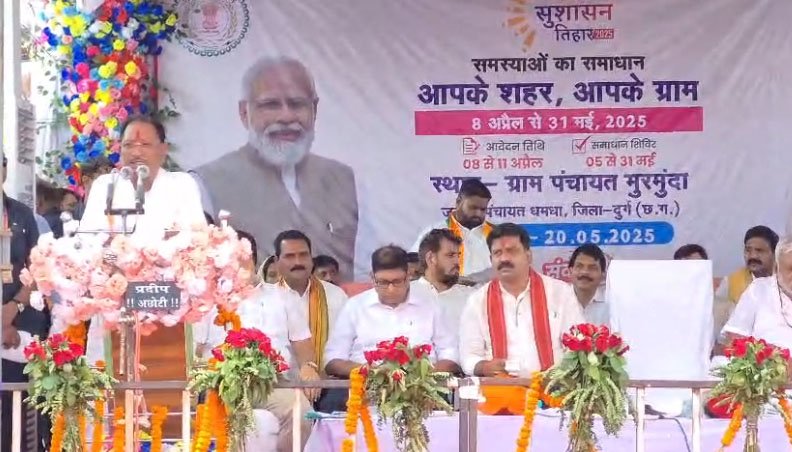 दुर्ग जिले के ग्राम पंचायत मुरमुंदा में मंगलवार को सुशासन तिहार कार्यक्रम के तहत पहुंचे मुख्यमंत्री विष्णु देव साय ने भीषण गर्मी के बावजूद बड़ी संख्या में जुटी जनता को संबोधित किया। उन्होंने सरकार की योजनाओं की जानकारी साझा की, समस्याएं सुनीं और कांग्रेस पर करारा हमला बोलते हुए कहा कि “कांग्रेस को झूठ बोलने में पीएचडी हासिल है”। वहीं, एसीबी और ईओडब्ल्यू की कार्रवाई को न्यायोचित ठहराते हुए उन्होंने पारदर्शी शासन की प्रतिबद्धता दोहराई।