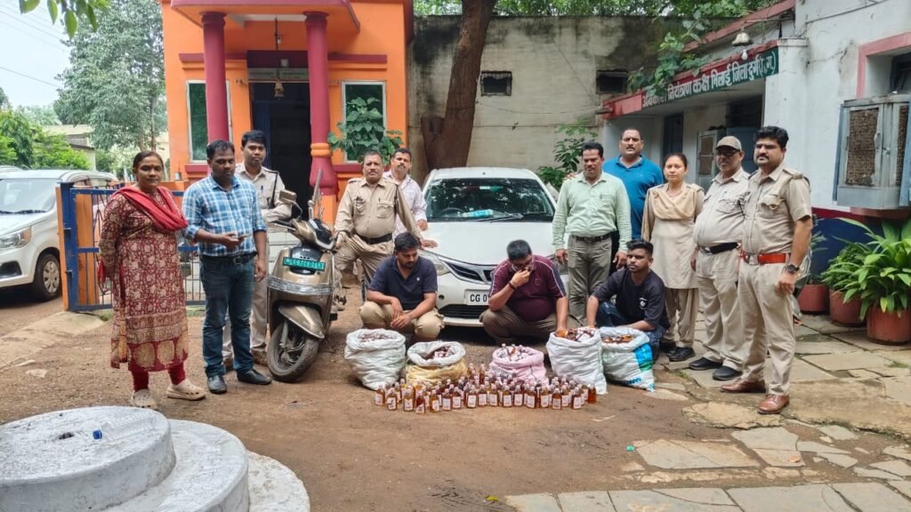 दुर्ग। शहर और आसपास के इलाकों में शराब माफिया के बढ़ते नेटवर्क पर लगाम कसते हुए आबकारी विभाग ने सोमवार को बड़ी कार्रवाई की। विभाग ने तीन अलग-अलग स्थानों पर दबिश देकर 90 लीटर अवैध विदेशी मदिरा जब्त की। इसके साथ ही एक टोयोटा कार, एक इलेक्ट्रिक स्कूटी, और तीन तस्करों को गिरफ्तार किया गया।