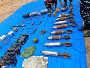 इसी क्रम में तर्रेम थाना क्षेत्र में जिला बल और केंद्रीय रिजर्व पुलिस बल (170वीं बटालियन) की संयुक्त टीम ने कोमटपल्ली के जंगल-पहाड़ी इलाके में सघन सर्चिंग अभियान चलाया। इस दौरान बड़े चट्टानों के बीच छिपाकर रखी गई भरमार बंदूक, बीजीएल राउंड व पार्ट्स, विस्फोटक निर्माण सामग्री (PEK, यूरिया, इलेक्ट्रिक वायर), एम्युनेशन पोच, विभिन्न आकार के प्रेशर कुकर, आरी ब्लेड, स्पीकर सहित अन्य सामान बरामद किए गए।