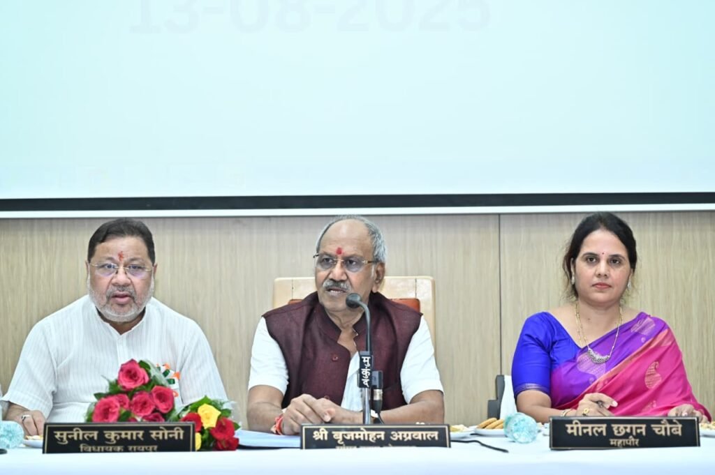 रायपुर लोकसभा सांसद बृजमोहन अग्रवाल ने नगर निगम मुख्यालय में आयोजित लंबी समीक्षा बैठक में अवैध कब्जों, जलभराव, सफाई, पेयजल और यातायात की समस्याओं पर अधिकारियों को तत्काल कार्रवाई के निर्देश दिए। उन्होंने त्योहारों के मद्देनज़र बाजारों में सड़क पर सामान रखने वाले दुकानदारों के खिलाफ अभियान चलाने और स्थायी समाधान की योजना बनाने को कहा।