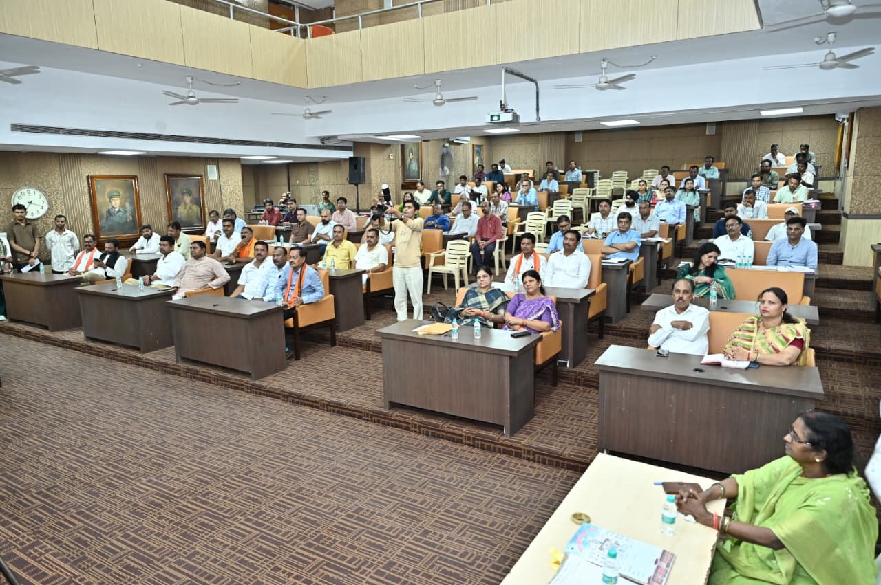 रायपुर। शहर की समस्याओं के समाधान के लिए रायपुर लोकसभा सांसद बृजमोहन अग्रवाल ने नगर निगम महात्मा गांधी सदन में लगभग साढ़े तीन घंटे की समीक्षा बैठक की। बैठक में महापौर मीनल चौबे, रायपुर दक्षिण विधायक सुनील सोनी, रायपुर ग्रामीण विधायक मोतीलाल साहू, रायपुर उत्तर विधायक पुरंदर मिश्रा, सभापति सूर्यकांत राठौड़, नेता प्रतिपक्ष संदीप साहू, आयुक्त विश्वदीप सहित सभी जोन अध्यक्ष, एमआईसी सदस्य और अधिकारी मौजूद रहे।