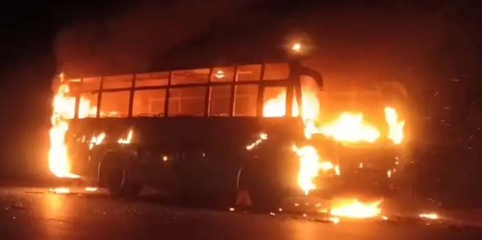 बालोद के पुरूर थाना क्षेत्र में शॉर्ट सर्किट से धधकी बस, कुछ ही मिनटों में वाहन जलकर...